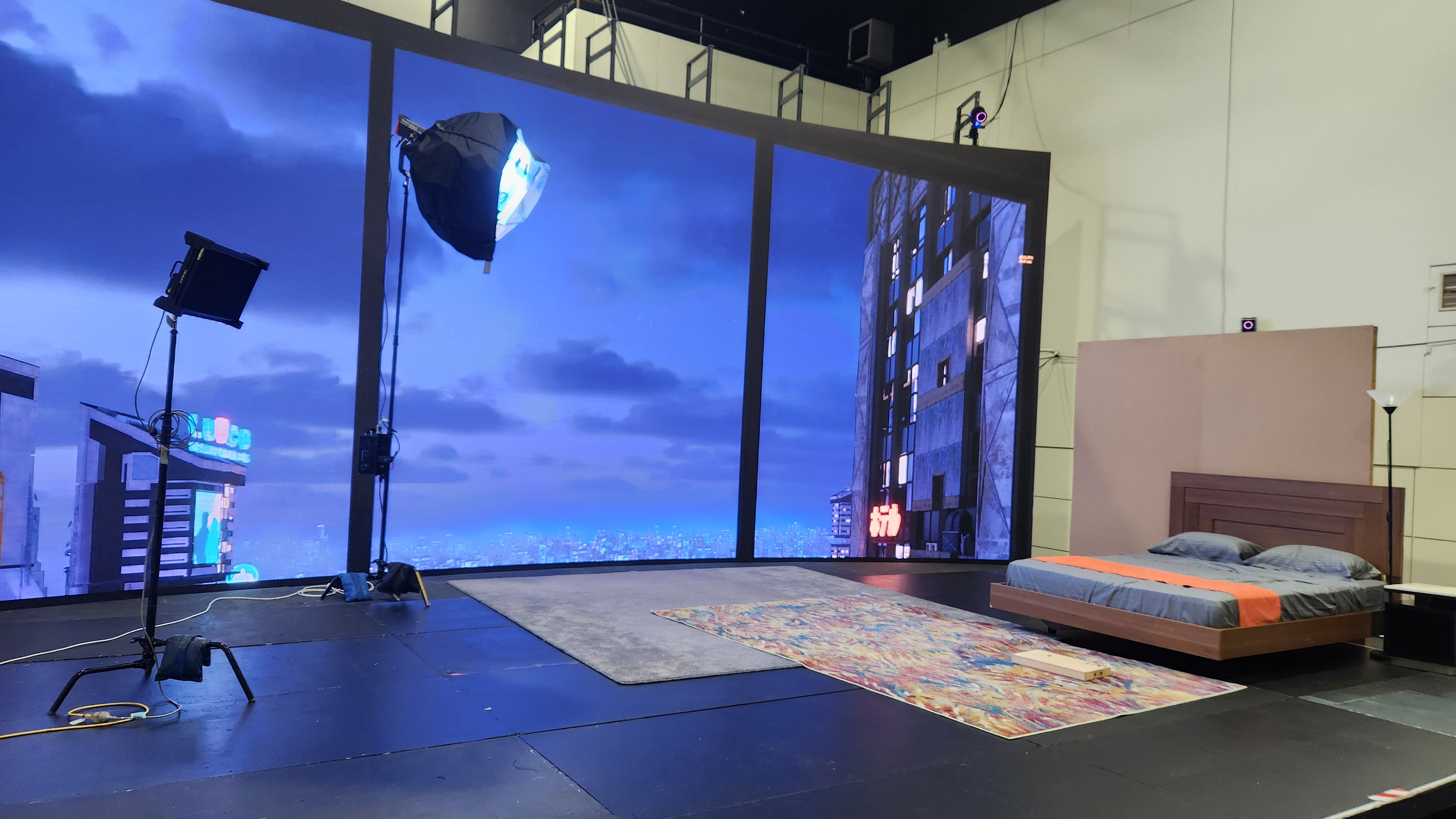 The brief was that for many of the scenes throughout the short film, it would take place in a bedroom apartment around eighty floors high. The concept was to create the effect of an apartment with a large ceiling to floor window, that overlooked a dystopian, futuristic city skyline. By having access to the Virtual Production studio at QUT, the goal was to develop an environment in Unreal Engine, and the sequences could be achieved using Virtual Production.