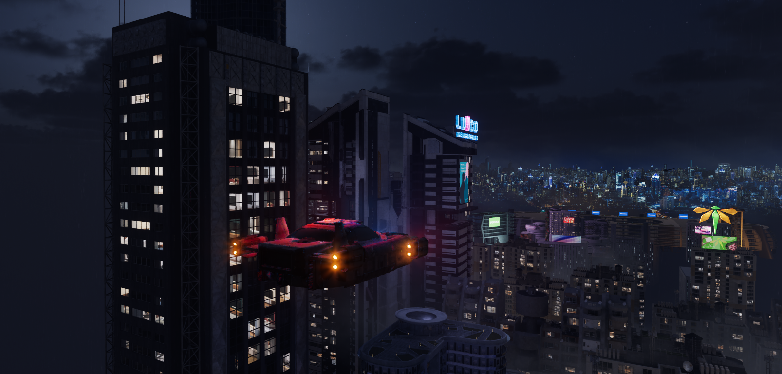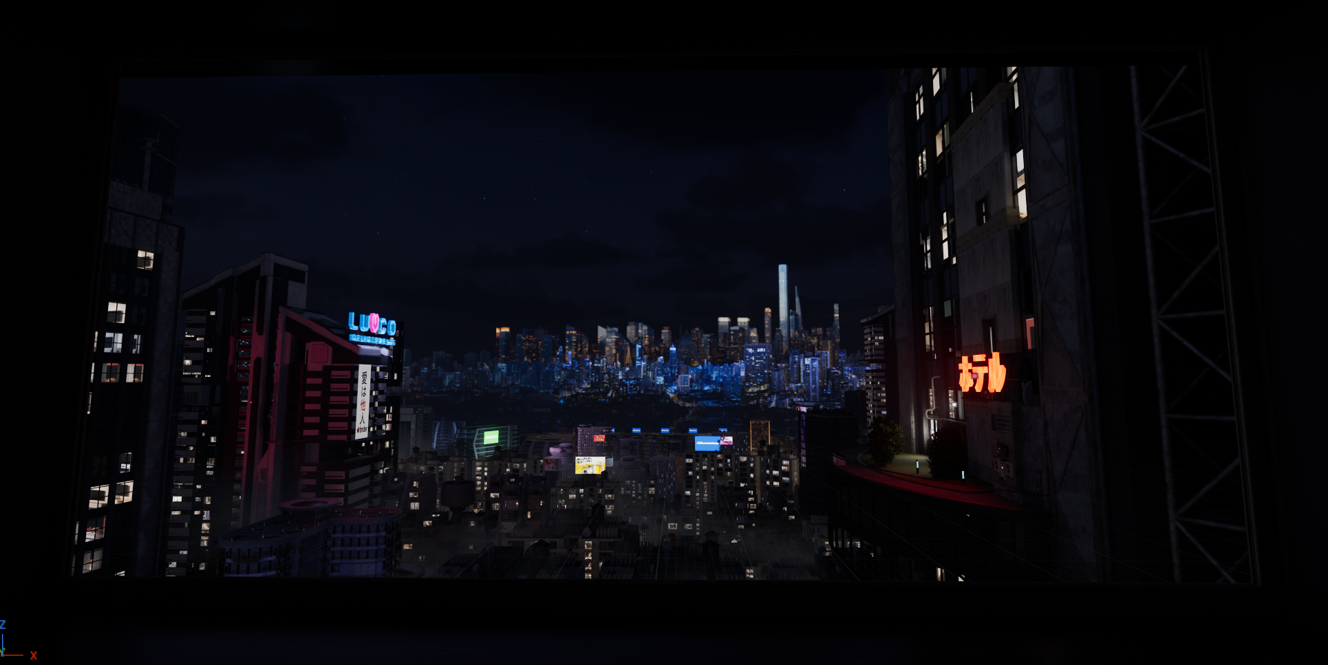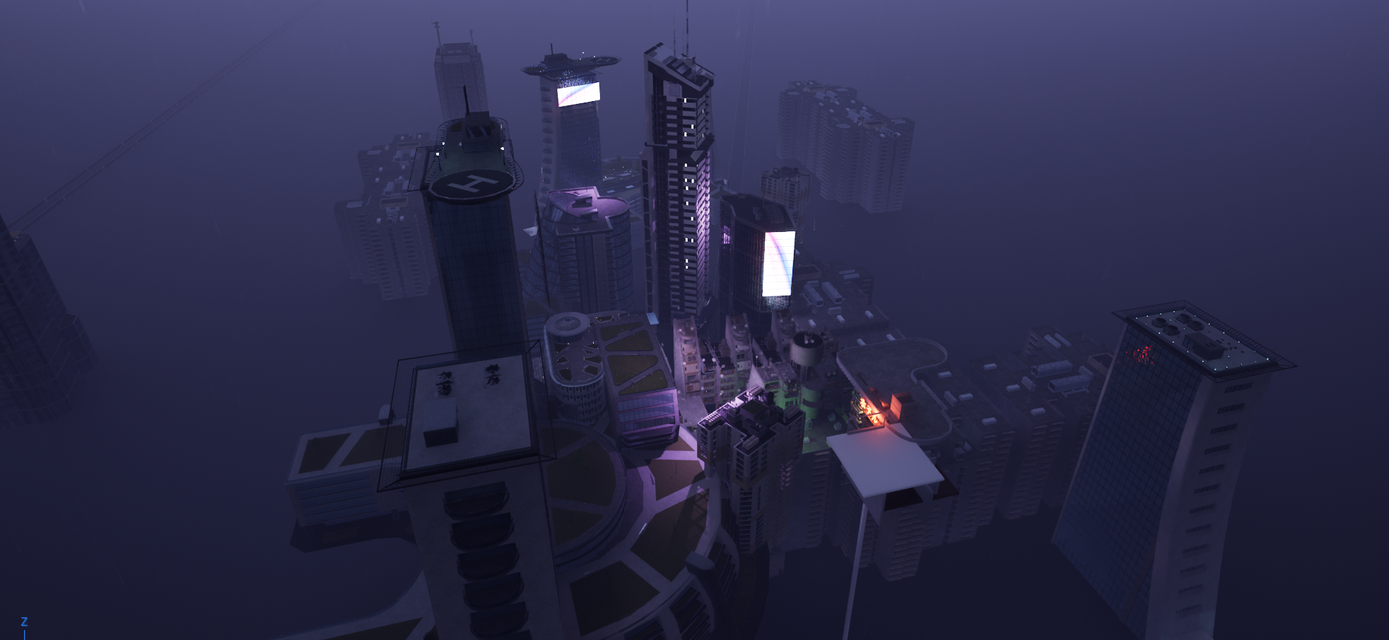 A technique I learnt from my Technical Supervisor in the Virtual Production space, was to use 2D plates in the background for very far away buildings to create the illusion that the environment is larger, whilst saving on optimization and performance. All 2D plates of buildings were sourced from Adobe Stock.