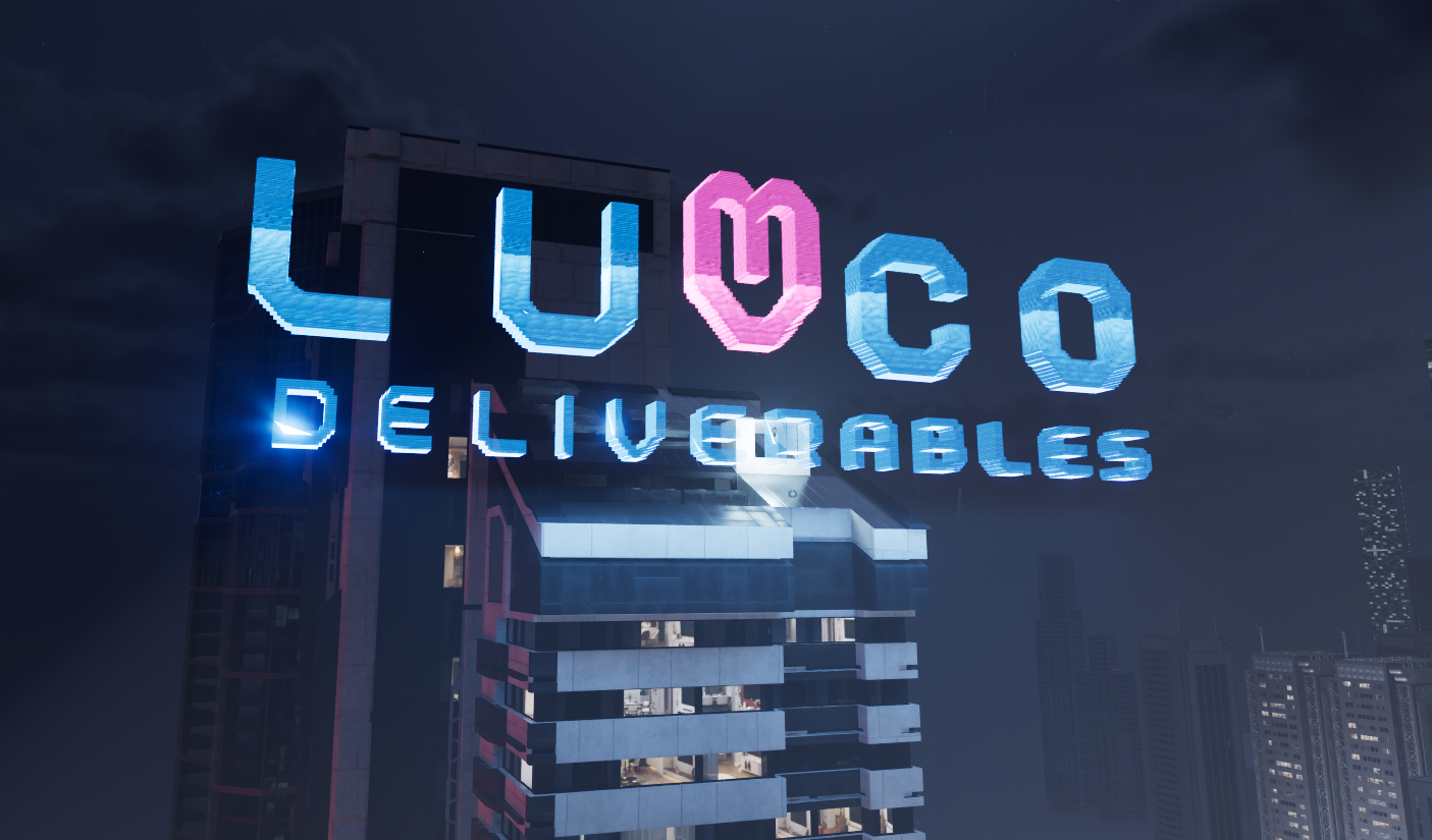 Art department had developed logo’s for the fictional company of Luvco Deliverables. I sourced the original files from the Art Department to develop 3D holograms for use within the Virtual Environment.