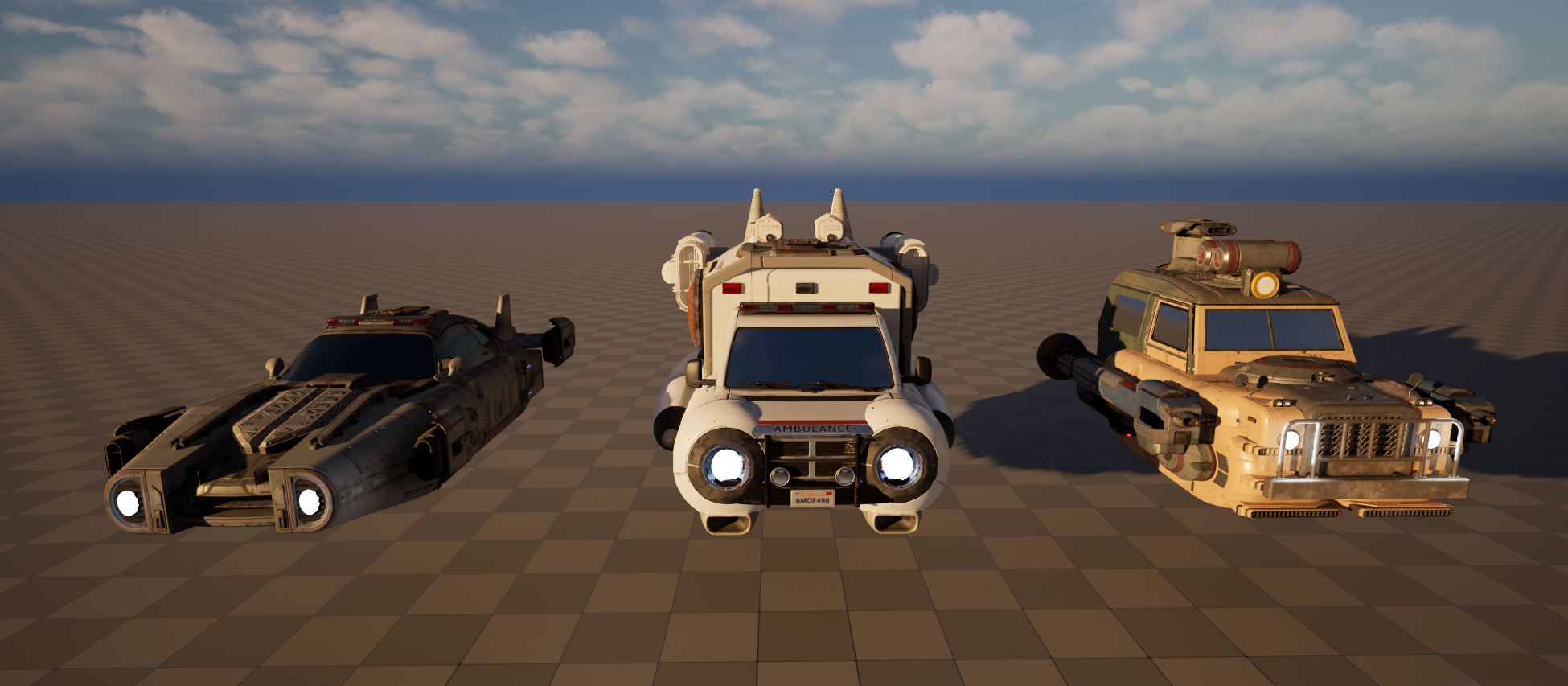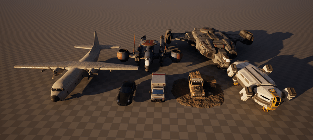 Above is various assets that I used to Kit bash together, to create three different cyberpunk vehicles.