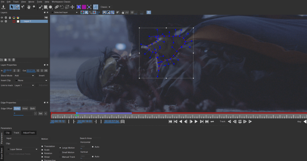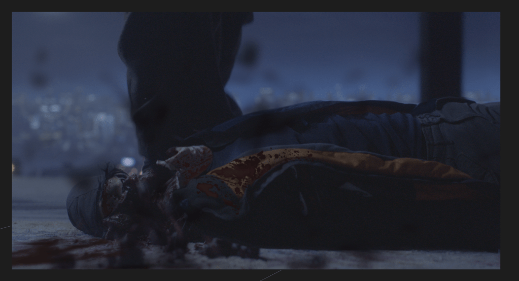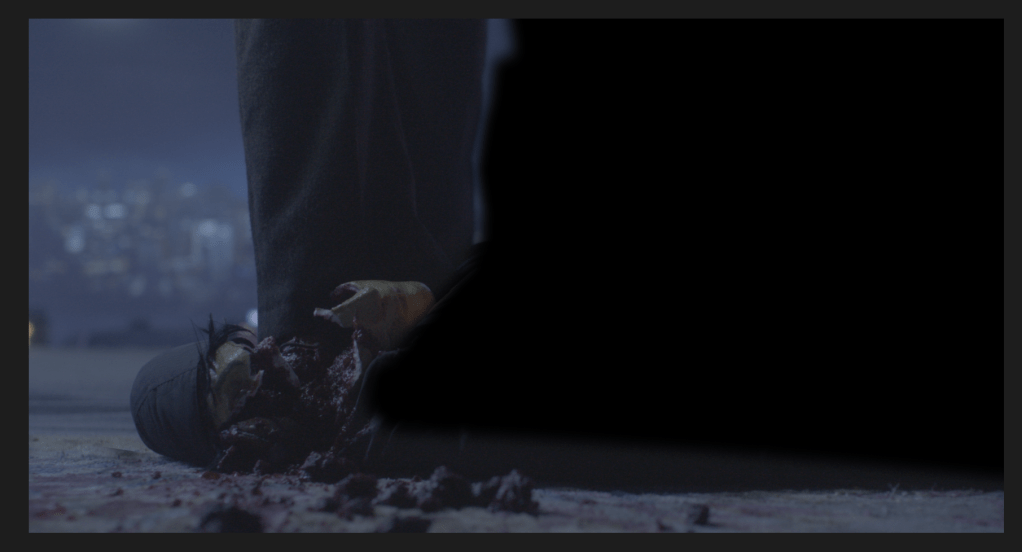 Below is a sequence of a VFX pipeline for merging to shots, one plate of an actor, the other of a dummy with a practical effect of dummy head being crushed. The goal was to create a believable effect to look like one continuous shot with enhanced blood effects.